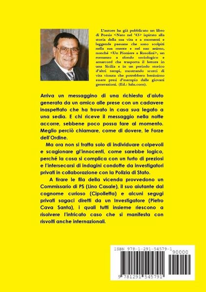 Questo libro giallo nasce da un messaggino inviato nella notte a un amico con richiesta d'aiuto: un cadavere è stato trovato in casa legato a una sedia. L'amico accorre ma serve la Polizia. E nell'intreccio della vicenda si muovono Poliziotti, Investigatori privati, balordi individui, pistole nascoste, gioielli rubati e trafficanti stranieri... in un miscuglio che va seguito con attenzione per non perdere il filo che porterà alla soluzione.