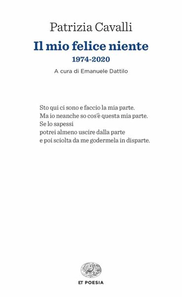 Una scelta dei versi essenziali di Patrizia Cavalli che dà corpo a una delle voci poetiche più necessarie del nostro tempo. Ci sono poeti che hanno il dono prezioso di dare una immediata, irresistibile felicità a chi li legge. Patrizia Cavalli è senz'altro tra questi. Non importa di che cosa parli: se di risvegli lenti tra le lenzuola mattutine o della pasta che va scolata in fretta, all'istante giusto - tutto ciò che questa lingua poetica nomina sembra toccarci immediatamente, come se rivelasse ogni volta, nel modo più esatto, qualcosa che ci appartiene e che forse abbiamo solo dimenticato. E non importa definirla: è semplice, eppure è anche ricca, complessa, variegata; è saggia e filosofa, ma anche istintiva, innamorata, visionaria. È comica e tragica, dolorosa. Capace di rimanere sempre se stessa - e, solo così, di sorprenderci ogni volta. Tutti gli strumenti critici e interpretativi, di fronte ai suoi versi, sembrano cadere - e non è detto che sia un male. Quel che resta da fare, allora, è semplicemente leggerla. Das Urheberrecht an bibliographischen und produktbeschreibenden Daten und an den bereitgestellten Bildern liegt bei Informazioni Editoriali, I.E. S.r.l., oder beim Herausgeber oder demjenigen, der die Genehmigung erteilt hat. Alle Rechte vorbehalten.