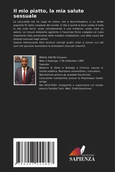 La sessualità non ha razza né colore, non è discriminatoria, è un diritto acquisito fin dalla creazione del mondo. Il cibo è quindi la base solida di tutta la vita sulla terra; usato correttamente è una medicina, usato male un veleno. Le misure dietetiche igieniche e l'esercizio fisico svolgono un ruolo importante nella prevenzione delle malattie metaboliche, una delle cause dei disturbi sessuali negli uomini.Questo interessante libro fornisce consigli pratici chiari e concisi sui cibi sani che possono aumentare le prestazioni sessuali maschili.