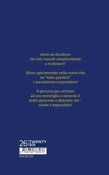 PERCHÉ accadono i miracoli? COME si avverano i desideri? Da tempo immemorabili l'umanità ha desiderato questa conoscenza. Nel libro 'Il Miracolo dei Quanti' le scoperte della fisica quantistica (Tutto il mondo, tutta la nostra vita, lavora energeticamente.) sono legate alla saggezza del buddismo (Perché non existe una propria esistenza nel nostro mondo tutto può apparire o scomparire da un momento all'altro.) e del cristianesimo (Dovremmo aver già preso mentalmente possesso di ciò che vogliamo, anche se non lo abbiamo ancora per poterlo ottenere.). Nella dimensione superiore (in unione con Dio) l'adempimento del nostro desiderio diventa una missione divina. Insieme hanno SVELATO IL SEGRETO DEL MIRACOLO. Anche se il segreto all'inizio ti confonde un po', compila già adesso il 'modulo del proprio desiderio' (vedi pag.125). Lasciati sorprendere, ispirare e emozionare. Gioca questo gioco, potrebbe incantare la tua vita.