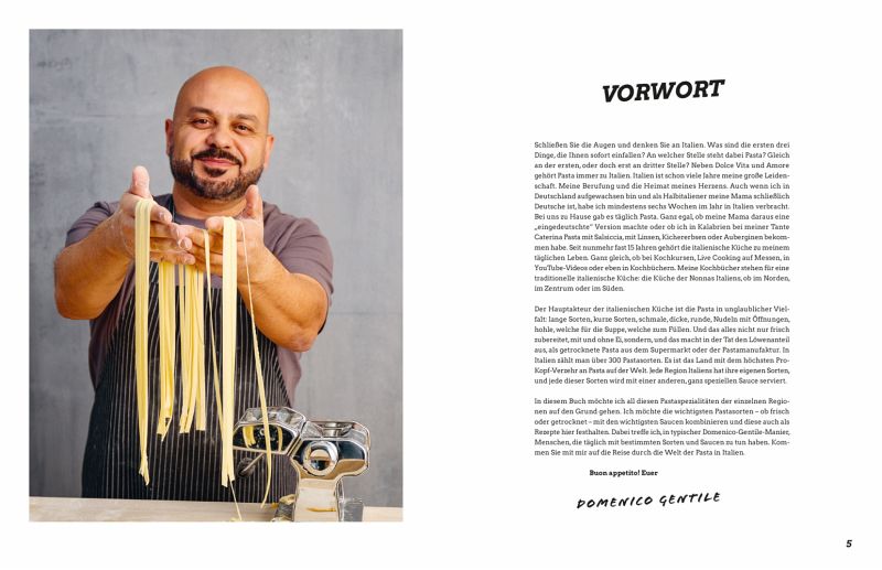 „Il mondo della Pasta“ ist eine Einladung in die Welt der Pasta. Domenico Gentile entführt Hobbyköche und -köchinnen nach Italien, wo er Menschen besucht hat, die täglich mit Pasta und Saucen zu tun haben. Auf über 200 Seiten teilt er sein Wissen. Er gibt Tipps zum Formen einfacher und gefüllter Nudeln und zeigt mit zahlreichen Rezepten, wie man die italienische Pastaliebe auf den eigenen Tisch bringen kann.