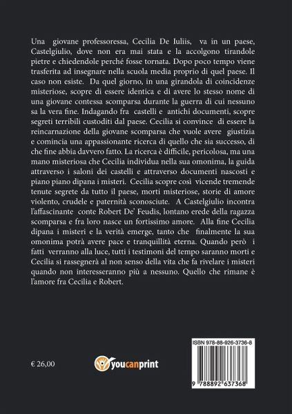 Una giovane professoressa, Cecilia De Iuliis, va in un paese, Castelgiulio, dove non era mai stata e la accolgono tirandole pietre e chiedendole perché fosse tornata. Dopo poco tempo viene trasferita ad insegnare proprio di quel paese. Il caso non esiste. Da quel giorno, in una girandola di misteri scopre di essere identica e di avere lo stesso nome di una giovane contessa scomparsa durante la guerra di cui nessuno sa la vera fine. Indagando fra castelli e antichi documenti, scopre segreti terribili. Cecilia si convince di essere la reincarnazione della giovane scomparsa e comincia una appassionante ricerca di quello che sia successo, di che fine abbia davvero fatto. La ricerca è difficile, pericolosa, ma una mano misteriosa che Cecilia individua nella sua omonima, la guida attraverso i saloni dei castelli e attraverso documenti nascosti e piano piano dipana i misteri. A Castelgiulio incontra l'affascinante conte Robert De' Feudis, lontano erede della ragazza scomparsa e fra loro nasce un fortissimo amore. Alla fine Cecilia dipana i misteri e la verità emerge. Quando però i fatti verranno alla luce, tutti i testimoni del tempo saranno morti. Il non senso della vita. Quello che rimane è l'amore fra Cecilia e Robert.