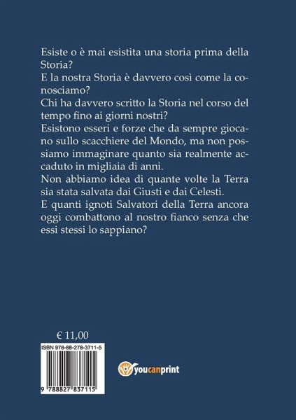 Esiste o è mai esistita una storia prima della Storia? E la nostra Storia è davvero così come la conosciamo? Chi ha davvero scritto la Storia nel corso del tempo fino ai giorni nostri? Esistono esseri e forze che da sempre giocano sullo scacchiere del Mondo, ma non possiamo immaginare quanto sia realmente accaduto in migliaia di anni. Non abbiamo idea di quante volte la Terra sia stata salvata dai Giusti e dai Celesti. E quanti ignoti Salvatori della Terra ancora oggi combattono al nostro fianco senza che essi stessi lo sappiano?