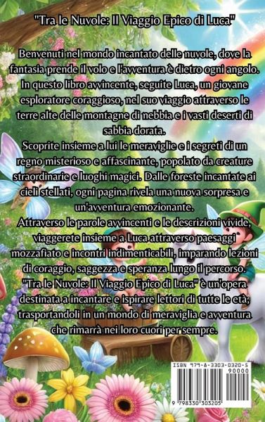 "Tra le Nuvole: Il Viaggio Epico di Luca" Benvenuti nel mondo incantato delle nuvole, dove la fantasia prende il volo e l'avventura è dietro ogni angolo. In questo libro avvincente, seguite Luca, un giovane esploratore coraggioso, nel suo viaggio attraverso le terre alte delle montagne di nebbia e i vasti deserti di sabbia dorata. Scoprite insieme a lui le meraviglie e i segreti di un regno misterioso e affascinante, popolato da creature straordinarie e luoghi magici. Dalle foreste incantate ai cieli stellati, ogni pagina rivela una nuova sorpresa e un'avventura emozionante. Attraverso le parole avvincenti e le descrizioni vivide, viaggerete insieme a Luca attraverso paesaggi mozzafiato e incontri indimenticabili, imparando lezioni di coraggio, saggezza e speranza lungo il percorso. "Tra le Nuvole: Il Viaggio Epico di Luca" è un'opera destinata a incantare e ispirare lettori di tutte le età, trasportandoli in un mondo di meraviglia e avventura che rimarrà nei loro cuori per sempre.