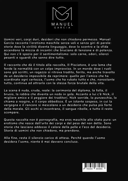 Uomini veri, corpi duri, desideri che non chiedono permesso. Manuel García racconta l'erotismo maschile senza veli e senza giri di parole: storie dove la virilità diventa linguaggio, dove lo scontro e la sfida accendono la miccia di incontri che bruciano di tensione e di potenza. Qui non c'è spazio per il sentimentalismo: solo carne, odori, silenzi pesanti e sguardi che sanno dire tutto.Il racconto che dà il titolo alla raccolta, Il Pisciatore, è una lama che fende la normalità con un colpo improvviso. In un mondo dove i ruoli sono già scritti, un ragazzo si ritrova tradito, ferito, ma anche travolto da un desiderio impossibile da reprimere: quello per l'amico che ha scardinato ogni certezza, l'uomo che ha rubato tutto e che, nonostante tutto, continua ad attrarlo con la stessa forza brutale della vita.La scena è nuda, cruda, reale: la cerimonia del diploma, la folla, il brusio, la rabbia che diventa un nodo in gola. Accanto a lui c'è Nick, il migliore amico e il peggiore dei traditori. Nick sorride, lo punzecchia, lo chiama a reagire, e il corpo obbedisce. È un istante sospeso, in cui la vergogna e il rancore si mescolano a un desiderio che pulsa più forte della morale. Gli occhi si incontrano, il sangue ribolle, e tutto il resto scompare.Questa raccolta non è pornografia, ma eros maschile allo stato puro: un erotismo che nasce dall'urto dei corpi e dal peso del non detto. Sono storie che lasciano addosso il calore della pelle e l'eco del desiderio. Storie di uomini che non chiedono, ma prendono.Alla fine, resta il silenzio carico di attesa. Perché quando l'uomo desidera l'uomo, niente è mai davvero concluso.