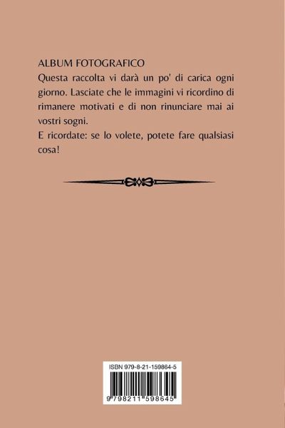 ALBUM FOTOGRAFICO Questa raccolta vi darà un po' di carica ogni giorno. Lasciate che le immagini vi ricordino di rimanere motivati e di non rinunciare mai ai vostri sogni. E ricordate: se lo volete, potete fare qualsiasi cosa!
