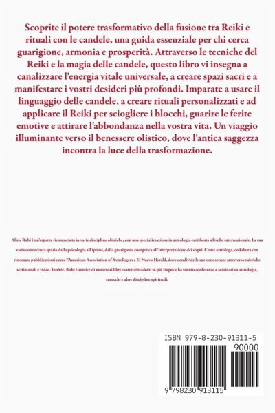 Scoprite il potere trasformativo della fusione tra Reiki e rituali con le candele, una guida essenziale per chi cerca guarigione, armonia e prosperità. Attraverso le tecniche del Reiki e la magia delle candele, questo libro vi insegna a canalizzare l'energia vitale universale, a creare spazi sacri e a manifestare i vostri desideri più profondi. Imparate a usare il linguaggio delle candele, a creare rituali personalizzati e ad applicare il Reiki per sciogliere i blocchi, guarire le ferite emotive e attirare l'abbondanza nella vostra vita. Un viaggio illuminante verso il benessere olistico, dove l'antica saggezza incontra la luce della trasformazione.