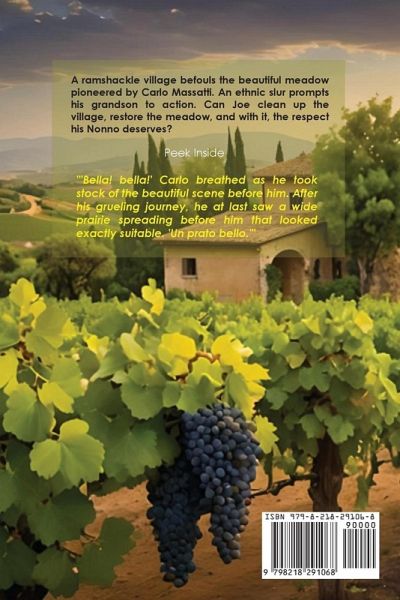 Following an ethnic slur from a co-worker, Joe flees to control his temper only to notice the ramshackle village that has befouled Il Prato, the beautiful meadow pioneered by his grandfather. Although others of different ethnicities followed Carlo there to develop fine farms, this village grew helter-skelter at the hands of questionable people. It denigrates the meadow, including Grandfather's meticulous farm. That's what caused the loss of respect for his family! Can Joe save the meadow-and Grandfather's reputation? Peek Inside: "'Bella! bella!' Carlo breathed as he took stock of the beautiful scene before him. After his grueling journey, he at last saw a wide prairie spreading before him that looked exactly suitable. 'Un prato bello.'"