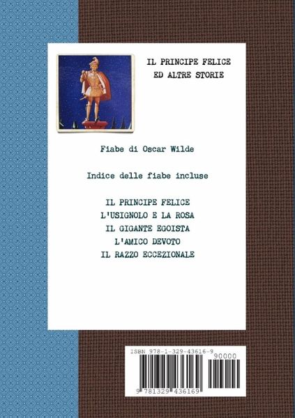 IL PRINCIPE FELICE ED ALTRE STORIE Fiabe di Oscar Wilde Titolo originale: The Happy Prince and Other Tales 5 FIABE INCLUSE IL PRINCIPE FELICE L'USIGNOLO E LA ROSA IL GIGANTE EGOISTA L'AMICO DEVOTO IL RAZZO ECCEZIONALE