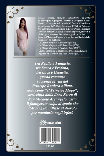 "illustratori: Armando Laurella, Claudio Battagin, Tummino Maria Angela, Matanza Filippa Floria".Questo romanzo prende ispirazione dalla figura affascinante e misteriosa del principe Raniero Alliata di Pietratagliata, soprannominato: "il principe mago", per i suoi interessi nel campo dell'occulto e per le sue spiccate doti medianiche. Ma il principe Raniero ebbe molteplici interessi: fu pittore di sensibilità metafisica, scultore, ma soprattutto fu un eccellente naturalista, e infatti, realizzò la più grande collezione di insetti e farfalle che si conserva presso il museo di palazzo D'Aumale di Terrasini. Tra realtà e fantasia, tra sacro e profano, tra luce e oscurità, si assiste a una lotta tra bene e male, tra forze della luce e delle tenebre. Questa lotta passa attraverso il "risveglio" dell'Arcangelo Michele. "Michele, ora svegliati! È tempo che tu e gli altri Arcangeli sconfiggete una volta per tutte gli Angeli caduti, perché essi hanno corrotto la terra...". A questo punto entra in gioco la Linea Sacra di San Michele Arcangelo, lungo la quale sorgono sette Santuari dedicati al principe delle Milizie Celesti. Inoltre, durante la battaglia finale il cui teatro sarà proprio Villa Alliata, si aprirà il "Varco degli Inferi", ma..., il tutto non finisce qui, ma bensì a Pietraperzia, presso la Salita di San Francesco dove risiedono le 14 cappelle della Via Crucis.
