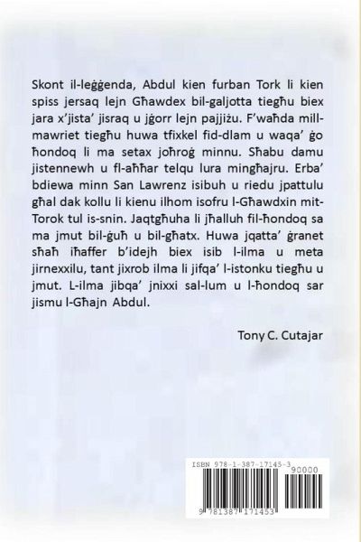Skont il-le¿¿enda, Abdul kien furban Tork li kien spiss jersaq lejn G¿awdex bil-galjotta tieg¿u biex jara x'jista' jisraq u j¿orr lejn pajji¿u. F'wäda mill-mawriet tieg¿u huwa tfixkel fid-dlam u waqa' ¿o ¿ondoq li ma setax jo¿ro¿ minnu. S¿abu damu jistennewh u fl-ä¿ar telqu lura ming¿ajru. Erba' bdiewa minn San Lawrenz isibuh u riedu jpattulu g¿al dak kollu li kienu ilhom isofru l-G¿awdxin mit-Torok tul is-snin. Jaqtg¿uha li j¿alluh fil-¿ondoq sa ma jmut bil-¿u¿ u bil-g¿atx. Huwa jqatta' ¿ranet s¿ä i¿affer b'idejh biex isib l-ilma u meta jirnexxilu, tant jixrob ilma li jifqa' l-istonku tieg¿u u jmut. L-ilma jibqa' jnixxi sal-lum u l-¿ondoq sar jismu l-G¿ajn Abdul.
