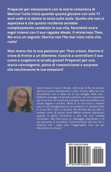 Preparati per emozionarti con la storia romantica di Marina! Tutto inizia quando questa giovane con solo 17 anni cade e sbatte la testa sulle scale. Quello che non si aspettava è che questo incidente avrebbe completamente cambiato la sua vita, facendole avere sogni intensi con il suo ragazzo ideale, il misterioso Theo. Ma ecco un segreto: Marina non l'ha mai visto nella vita reale! Man mano che la sua passione per Theo cresce, Marina si trova di fronte a un dilemma: riuscirà a controllare il suo cuore e scegliere la strada giusta? Preparati per una storia coinvolgente, piena di romanticismo e sorprese che toccheranno le tue emozioni!