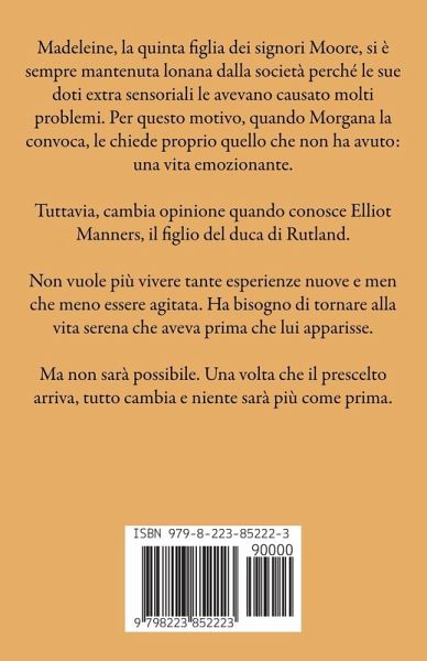 Madeleine, la quinta figlia dei signori Moore, si è sempre mantenuta lonana dalla società perché le sue doti extra sensoriali le avevano causato molti problemi. Per questo motivo, quando Morgana la convoca, le chiede proprio quello che non ha avuto: una vita emozionante. Tuttavia, cambia opinione quando conosce Elliot Manners, il figlio del duca di Rutland. Non vuole più vivere tante esperienze nuove e men che meno essere agitata. Ha bisogno di tornare alla vita serena che aveva prima che lui apparisse. Ma non sarà possibile. Una volta che il prescelto arriva, tutto cambia e niente sarà più come prima.