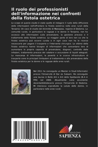 Lo scopo di questo studio è stato quello di indagare il ruolo della diffusione delle informazioni nell'affrontare la fistola ostetrica nelle aree rurali della Tanzania: Un caso di studio del distretto di Mpwapwa, regione di Dodoma. La comunità rurale, in particolare le ragazze e le donne in Tanzania, non ha accesso alle informazioni sulla prevenzione, la gestione precoce e il trattamento della fistola ostetrica. La maggior parte di loro non sa che la fistola ostetrica può essere curata e in ogni caso non ha le risorse necessarie per pagare il trasporto e l'intervento chirurgico. Le vittime della fistola ostetrica hanno bisogno di informazioni che consentano loro di aumentare le proprie capacità di prevenzione, diagnosi, controllo delle infezioni, trattamento precoce del catetere e assunzione di liquidi adeguati. La mancanza di informazioni, la povertà e le scarse infrastrutture di trasporto sono le principali limitazioni al trattamento e alla prevenzione della fistola ostetrica per le donne e le ragazze delle aree rurali.