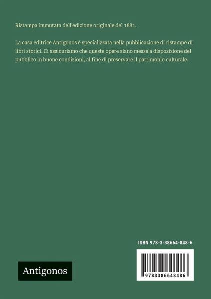 Ristampa immutata dell'edizione originale del 1881. La casa editrice Antigonos è specializzata nella pubblicazione di ristampe di libri storici. Ci assicuriamo che queste opere siano messe a disposizione del pubblico in buone condizioni, al fine di preservare il patrimonio culturale.