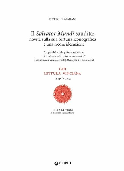 Il Salvator Mundi già in collezione Cook e oggi in collezione saudita, è riapparso sul mercato antiquario nel 2005 ed esposto alla National Gallery di Londra nel 2011-2012 come opera autografa di Leonardo. Quest'attribuzione ha dato luogo a infinite polemiche, molte delle quali non hanno, per la maggior parte, niente a che fare con la pittura in sé e la sua qualità, ma derivano dal prezzo esorbitante pagato durante i suoi recenti passaggi di proprietà. L'enorme fortuna di questa iconografia, sicuramente messa a punto da Leonardo stesso, di cui sussistono i disegni preparatori e una serie di dati documentari, è qui riconsiderata, con nuovi argomenti e confronti, insieme con una nuova valutazione delle critiche e delle posizioni degli studiosi a proposito delle parti eventualmente autografe e delle diverse attribuzioni proposte. Das Urheberrecht an bibliographischen und produktbeschreibenden Daten und an den bereitgestellten Bildern liegt bei Informazioni Editoriali, I.E. S.r.l., oder beim Herausgeber oder demjenigen, der die Genehmigung erteilt hat. Alle Rechte vorbehalten.