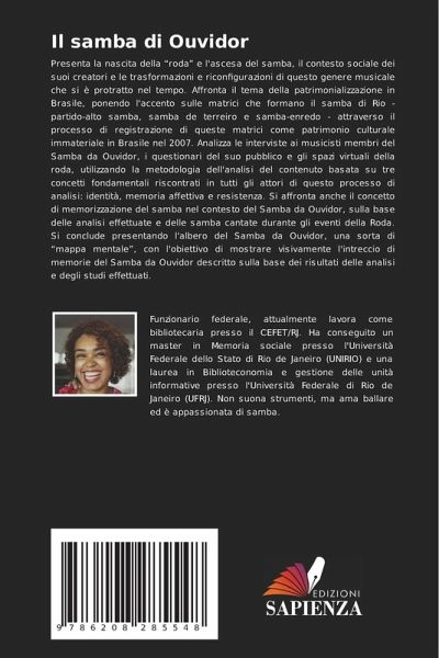 Presenta la nascita della ¿rodä e l'ascesa del samba, il contesto sociale dei suoi creatori e le trasformazioni e riconfigurazioni di questo genere musicale che si è protratto nel tempo. Affronta il tema della patrimonializzazione in Brasile, ponendo l'accento sulle matrici che formano il samba di Rio - partido-alto samba, samba de terreiro e samba-enredo - attraverso il processo di registrazione di queste matrici come patrimonio culturale immateriale in Brasile nel 2007. Analizza le interviste ai musicisti membri del Samba da Ouvidor, i questionari del suo pubblico e gli spazi virtuali della roda, utilizzando la metodologia dell'analisi del contenuto basata su tre concetti fondamentali riscontrati in tutti gli attori di questo processo di analisi: identità, memoria affettiva e resistenza. Si affronta anche il concetto di memorizzazione del samba nel contesto del Samba da Ouvidor, sulla base delle analisi effettuate e delle samba cantate durante gli eventi della Roda. Si conclude presentando l'albero del Samba da Ouvidor, una sorta di ¿mappa mentale¿, con l'obiettivo di mostrare visivamente l'intreccio di memorie del Samba da Ouvidor descritto sulla base dei risultati delle analisi e degli studi effettuati.