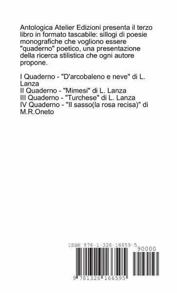 La grazia e l'abbondanza di questa raccolta poetica di Maria Rosa Oneto, raccontano il suo diario di vita reale e sensibile. La sorte che contraddistingue la sua vita, segna ma non appesantisce il suo volo artistico alto, il suo senso di appartenenza al divino, in Dialogo. Sensibilità che prova verso la sua terra, gli elementi del creato del quale è parte. Il contenuto è ricco di emozione e condividiamo ogni passo, perché Maria Rosa cammina, cammina sulle righe di pagine che vogliamo pubblicare e non solo per il contenuto che è la cosa che più ammiriamo: la ricerca stilistica dello scrivere, qui sottolinea con punteggiatura il fraseggio. L'armonia è sottintesa e soggiace per esprimere meglio la verità dipinta o quasi fotografata nell'immagine poetica. Grazie Mary Rose, come ti chiamo io, per tutto questo. Lucia Lanza