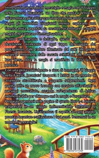 Immergiti in un mondo di meraviglie e magia con 'Il Viaggio nella Foresta Incantata', un libro che porta i lettori in un'avventura epica attraverso una terra di incanto e mistero. Segui gli incredibili viaggiatori mentre esplorano una foresta antica, popolata da creature straordinarie e luoghi magici che catturano l'immaginazione. Scritto con maestria e dettaglio, questo libro offre una descrizione avvincente di ogni tappa del viaggio dei protagonisti, dalle radure illuminate dal sole alle grotte oscure e misteriose, dalle cascate scintillanti alle notti di luna piena, dove la magia si manifesta in tutta la sua potenza. Con una prosa coinvolgente e ricca di immagini, 'Il Viaggio nella Foresta Incantata' trasporta i lettori in un mondo di avventure straordinarie e scoperte sorprendenti. Ogni pagina offre un nuovo incontro con creature affascinanti e paesaggi mozzafiato, creando un'esperienza di lettura indimenticabile per chiunque ami la magia e l'avventura. Preparati a perderti nelle pagine di questo libro e a lasciarti trasportare in un viaggio indimenticabile attraverso la Foresta Incantata. Un'avventura ti aspetta ad ogni angolo, pronta a incantare e affascinare i tuoi sensi. Benvenuti in un mondo di meraviglie!