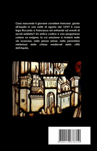 Cosa nasconde il giovane cavaliere francese, giunto all'Aquila in una notte di agosto del 1275? E cosa lega Riccardo a Francesca ed entrambi ad eventi di secoli addietro? Un antico codice e una pergamena celano un enigma, la cui soluzione si rivelerà nelle vie scoscese, nelle piazze ariose, nella penombra misteriosa delle chiese medievali della città dell'Aquila.
