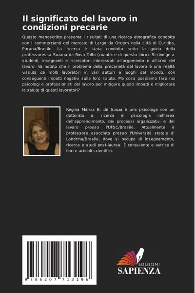 Questo manoscritto presenta i risultati di una ricerca etnografica condotta con i commercianti del mercato di Largo da Ordem nella città di Curitiba, Paraná/Brasile. La ricerca è stata condotta sotto la guida della professoressa Suzana da Rosa Tolfo (coautrice di questo libro). Si rivolge a studenti, insegnanti e ricercatori interessati all'argomento e all'area del lavoro. Va notato che il problema della precarietà del lavoro è una realtà vissuta da molti lavoratori in vari settori e luoghi del mondo, con conseguenti impatti negativi sulla loro salute. Ma cosa possiamo fare noi psicologi e professionisti del lavoro per mitigare questi impatti e migliorare la salute di questi lavoratori?
