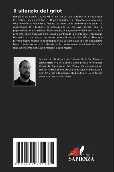 Per più di tre secoli, la schiavitù africana è persistita in Brasile, strutturando le relazioni sociali del Paese. Dopo l'abolizione, il discorso prodotto dalle élite intellettuali del Paese, basato sul mito della democrazia razziale, ha mascherato la situazione di oppressione in cui vive ancora oggi la popolazione nera brasiliana. Nelle scuole, l'insegnamento della storia che si presenta come liberatorio ha spesso contribuito a mantenere i pregiudizi. Basandosi su un quadro teorico ancorato a Gramsci e Jorn Rüsen, Henrique Ferreira Pacini espone le contraddizioni tra un curriculum di storia scolastica basato sull'eurocentrismo liberale e le nuove narrazioni introdotte dalla legislazione brasiliana sulle relazioni etnico-razziali.