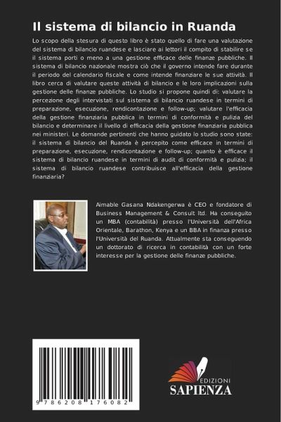 Lo scopo della stesura di questo libro è stato quello di fare una valutazione del sistema di bilancio ruandese e lasciare ai lettori il compito di stabilire se il sistema porti o meno a una gestione efficace delle finanze pubbliche. Il sistema di bilancio nazionale mostra ciò che il governo intende fare durante il periodo del calendario fiscale e come intende finanziare le sue attività. Il libro cerca di valutare queste attività di bilancio e le loro implicazioni sulla gestione delle finanze pubbliche. Lo studio si propone quindi di: valutare la percezione degli intervistati sul sistema di bilancio ruandese in termini di preparazione, esecuzione, rendicontazione e follow-up; valutare l'efficacia della gestione finanziaria pubblica in termini di conformità e pulizia del bilancio e determinare il livello di efficacia della gestione finanziaria pubblica nei ministeri. Le domande pertinenti che hanno guidato lo studio sono state: il sistema di bilancio del Ruanda è percepito come efficace in termini di preparazione, esecuzione, rendicontazione e follow-up; quanto è efficace il sistema di bilancio ruandese in termini di audit di conformità e pulizia; il sistema di bilancio ruandese contribuisce all'efficacia della gestione finanziaria?