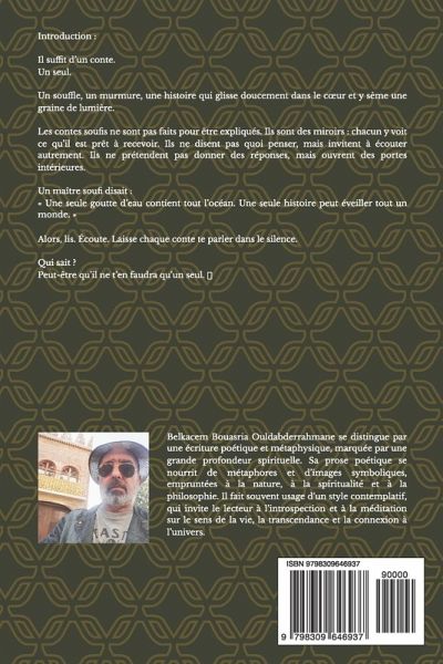 Introduction: Il suffit d'un conte. Un seul. Un souffle, un murmure, une histoire qui glisse doucement dans le coeur et y sème une graine de lumière. Les contes soufis ne sont pas faits pour être expliqués. Ils sont des miroirs: chacun y voit ce qu'il est prêt à recevoir. Ils ne disent pas quoi penser, mais invitent à écouter autrement. Ils ne prétendent pas donner des réponses, mais ouvrent des portes intérieures. Un maître soufi disait: Une seule goutte d'eau contient tout l'océan. Une seule histoire peut éveiller tout un monde. Alors, lis. Écoute. Laisse chaque conte te parler dans le silence. Qui sait ? Peut-être qu'il ne t'en faudra qu'un seul. ✨