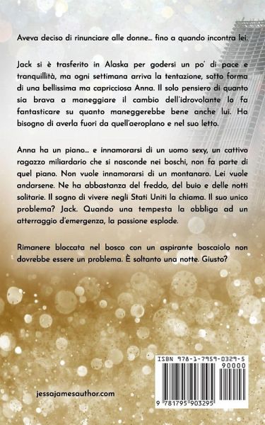 Aveva deciso di rinunciare alle donne... fino a quando incontra lei. Jack si è trasferito in Alaska per godersi un po' di pace e tranquillità, ma ogni settimana arriva la tentazione, sotto forma di una bellissima ma capricciosa Anna. Il solo pensiero di quanto sia brava a maneggiare il cambio dell'idrovolante lo fa fantasticare su quanto maneggerebbe bene anche lui. Ha bisogno di averla fuori da quell'aeroplano e nel suo letto. Anna ha un piano... e innamorarsi di un uomo sexy, un cattivo ragazzo miliardario che si nasconde nei boschi, non fa parte di quel piano. Non vuole innamorarsi di un montanaro. Lei vuole andarsene. Ne ha abbastanza del freddo, del buio e delle notti solitarie. Il sogno di vivere negli Stati Uniti la chiama. Il suo unico problema? Jack. Quando una tempesta la obbliga ad un atterraggio d'emergenza, la passione esplode. Rimanere bloccata nel bosco con un aspirante boscaiolo non dovrebbe essere un problema. È soltanto una notte. Giusto?