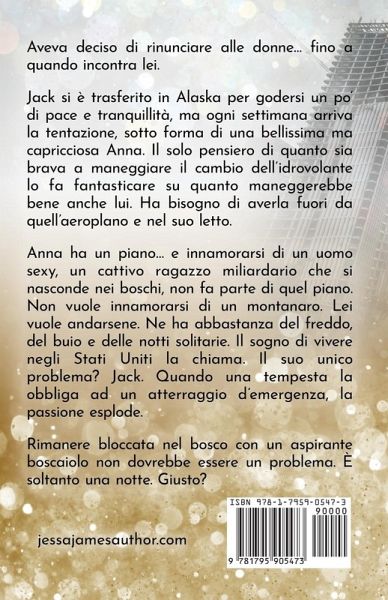 Aveva deciso di rinunciare alle donne... fino a quando incontra lei. Jack si è trasferito in Alaska per godersi un po' di pace e tranquillità, ma ogni settimana arriva la tentazione, sotto forma di una bellissima ma capricciosa Anna. Il solo pensiero di quanto sia brava a maneggiare il cambio dell'idrovolante lo fa fantasticare su quanto maneggerebbe bene anche lui. Ha bisogno di averla fuori da quell'aeroplano e nel suo letto. Anna ha un piano... e innamorarsi di un uomo sexy, un cattivo ragazzo miliardario che si nasconde nei boschi, non fa parte di quel piano. Non vuole innamorarsi di un montanaro. Lei vuole andarsene. Ne ha abbastanza del freddo, del buio e delle notti solitarie. Il sogno di vivere negli Stati Uniti la chiama. Il suo unico problema? Jack. Quando una tempesta la obbliga ad un atterraggio d'emergenza, la passione esplode. Rimanere bloccata nel bosco con un aspirante boscaiolo non dovrebbe essere un problema. È soltanto una notte. Giusto?