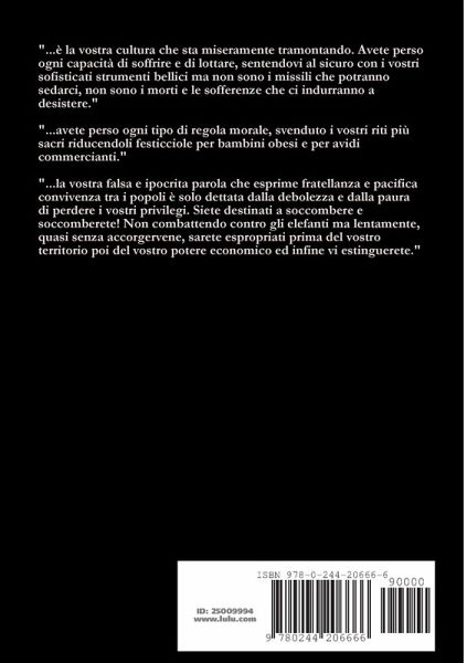 L'inquietudine della società occidentale per il massiccio esodo multirazziale e la difficile convivenza con la cultura islamica fanno da sfondo ad una spy story italiana dai contorni verosimili e inquietanti. Non ci sono dubbi, l'islamizzazione europea è ormai alle porte e le conseguenze di un così fulmineo e radicale cambiamento sono drammatiche. Un giovane matematico sviluppa una tesi di laurea sull'evoluzione socioculturale europea. I suoi elaborati algoritmi suscitano interesse, tanto da essere ingaggiato da un ente paragovernativo. Basterà la forza della razionalità e dei numeri a sgombrare le menti dal gioco della sterile polemica o agli elefanti di Annibale si sostituirà la pachidermica immobilità della politica? Ispiratore e strumento, artefice e vittima, del progetto reazionario alla progressiva islamizzazione europea, Andrea Santi, è il protagonista del machiavellico piano di chi il potere lo detiene davvero e lo esercita senza scrupoli sfruttando le lacune delle istituzioni democratiche.