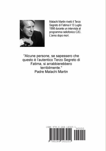 "Alcune persone, se sapessero che questo è l'autentico Terzo Segreto di Fatima, si arrabbierebbero terribilmente." Padre Malachi Martin - 13 Luglio 1998