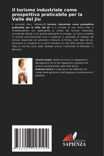 Il presente libro, intitolato Il turismo industriale come prospettiva praticabile per la Valle del Jiu è il risultato di una ricerca inter e multidisciplinare con applicabilità al campo del turismo industriale, considerato attuale e con grandi potenzialità di sviluppo. La ricerca condotta in un'area post-industriale mira a esplorare il potenziale di sviluppo del turismo industriale nel perimetro minerario di Petrila, nella Valle del Jiu, attraverso la creazione di un parco tematico sul sito della vecchia miniera. Tutte le ricerche sono state condotte presso l'Università di Petrosani, in Romania.