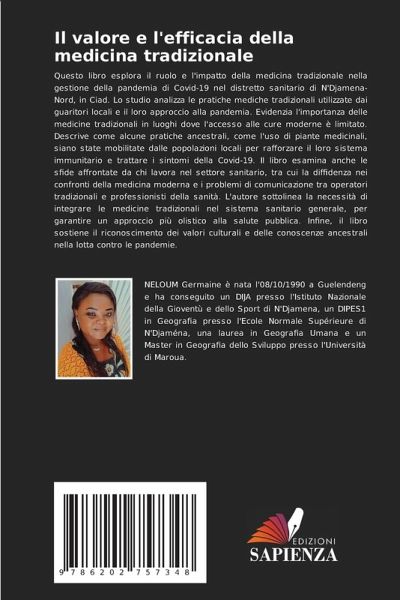 Questo libro esplora il ruolo e l'impatto della medicina tradizionale nella gestione della pandemia di Covid-19 nel distretto sanitario di N'Djamena-Nord, in Ciad. Lo studio analizza le pratiche mediche tradizionali utilizzate dai guaritori locali e il loro approccio alla pandemia. Evidenzia l'importanza delle medicine tradizionali in luoghi dove l'accesso alle cure moderne è limitato. Descrive come alcune pratiche ancestrali, come l'uso di piante medicinali, siano state mobilitate dalle popolazioni locali per rafforzare il loro sistema immunitario e trattare i sintomi della Covid-19. Il libro esamina anche le sfide affrontate da chi lavora nel settore sanitario, tra cui la diffidenza nei confronti della medicina moderna e i problemi di comunicazione tra operatori tradizionali e professionisti della sanità. L'autore sottolinea la necessità di integrare le medicine tradizionali nel sistema sanitario generale, per garantire un approccio più olistico alla salute pubblica. Infine, il libro sostiene il riconoscimento dei valori culturali e delle conoscenze ancestrali nella lotta contro le pandemie.