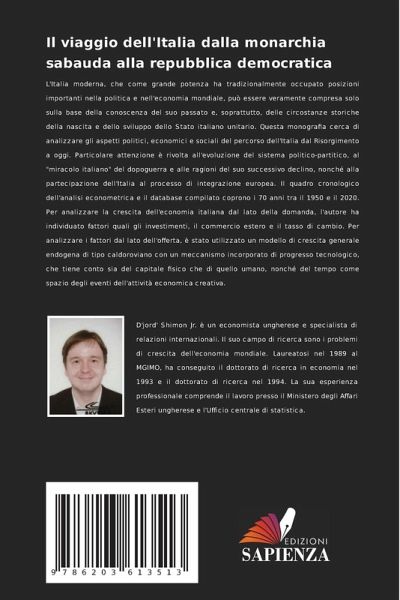 L'Italia moderna, che come grande potenza ha tradizionalmente occupato posizioni importanti nella politica e nell'economia mondiale, può essere veramente compresa solo sulla base della conoscenza del suo passato e, soprattutto, delle circostanze storiche della nascita e dello sviluppo dello Stato italiano unitario. Questa monografia cerca di analizzare gli aspetti politici, economici e sociali del percorso dell'Italia dal Risorgimento a oggi. Particolare attenzione è rivolta all'evoluzione del sistema politico-partitico, al "miracolo italiano" del dopoguerra e alle ragioni del suo successivo declino, nonché alla partecipazione dell'Italia al processo di integrazione europea. Il quadro cronologico dell'analisi econometrica e il database compilato coprono i 70 anni tra il 1950 e il 2020. Per analizzare la crescita dell'economia italiana dal lato della domanda, l'autore ha individuato fattori quali gli investimenti, il commercio estero e il tasso di cambio. Per analizzare i fattori dal lato dell'offerta, è stato utilizzato un modello di crescita generale endogena di tipo caldoroviano con un meccanismo incorporato di progresso tecnologico, che tiene conto sia del capitale fisico che di quello umano, nonché del tempo come spazio degli eventi dell'attività economica creativa.