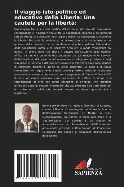 Quest'opera tratta la storia politica della Liberia, descrivendo l'esclusione costituzionale e le barriere sociali tra la popolazione indigena e gli immigrati schiavi liberati che vivevano nella regione dell'Africa occidentale che divenne la Liberia. Racconta le malefatte, le scorrettezze e le inadempienze nel governo della nazione, tra cui l'ambizione al potere politico, l'abbandono della popolazione rurale e le ricchezze acquisite in modo fraudolento dai politici. In primo piano c'è anche il settore dell'istruzione della nazione, afflitto da un alto tasso di disoccupazione tra gli insegnanti in servizio, dall'ostinazione del governo ad aumentare o adeguare gli stipendi degli insegnanti in servizio e dal loro pensionamento anticipato dopo l'acquisizione di certificati, diplomi o lauree di livello superiore. Le rette e le tasse scolastiche non regolamentate nelle scuole private e religiose, le pratiche accademiche scorrette che comportano il pagamento di "tasse di flessibilità" durante gli esami nazionali sono accennate. Il traffico di droga e il contrabbando di armi non fanno eccezione al discorso. Altri problemi emergenti sono gli elettori "mercenari" che attraversano i distretti elettorali, le contee e i confini internazionali durante le elezioni presidenziali e legislative.