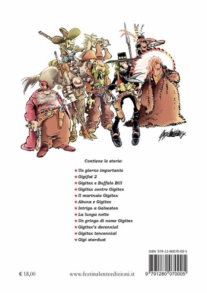 Secondo volume con le avventure della serie di Gigitex, il biondo pistolero dal cuore d'oro e dalla fama spesso sopravvalutata. Nato nel 1971 e pubblicato in Italia e all'estero fino al 1990, anno della prematura scomparsa del suo autore, Gigitex è uno scanzonato fumetto umoristico che trae ispirazione dal genere cinematografico degli spaghetti western. Nel corso delle varie storie interagiscono con Gigitex sia alcuni personaggi storici realmente esistiti (Daniele Comboni, Buffalo Bill, Ulisse Grant, ecc.) simpaticamente rivisitati, sia una simpatica schiera di personaggi di contorno che sono la chiara trasposizione in chiave western di certe figure tipiche della vita di paese nostrana (Clint il beone, l'oste Nisio, Lara la maestrina, Houdine il medico, padre Gionata, ecc.). Curato da Franco Carrara, storico amico e collaboratore di Alberto Simioni, con la copertina di Giorgio Cavazzano e la postfazione a cura di Daniele Bevilacqua, il volume, realizzato recuperando le tavole originali dell'autore, raccoglie le storie pubblicate tra il 1979 e il 1982.