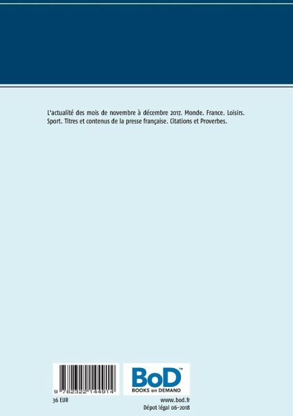 L'actualité des mois de novembre à décembre 2017. Monde. France. Loisirs. Sport. Titres et contenus de la presse française. Citations et Proverbes.