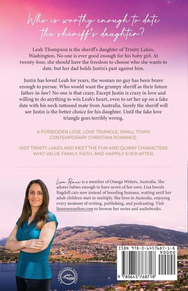 Leah Thompson is the Sheriff's daughter of Trinity Lakes, Washington state. No one is good enough for his baby girl. At twenty-four, she should be able to choose who she wants to date, but her dad holds Justin's past against him. Justin has loved Leah for years, the woman where no guy has been brave enough to pursue. Who would want the grumpy sheriff as their future father-in-law? No one is that crazy. Except Justin is crazy in love and willing to do anything to win Leah's heart, even to set her up on a fake date with his neck-tattooed mate from Australia. Surely the sheriff will see Justin is the better choice for his daughter. Until the fake love triangle goes terribly wrong. A forbidden love, love triangle, small town contemporary Christian romance. Visit Trinity Lakes and meet the fun and quirky characters who value family, faith, and happily-ever-after.