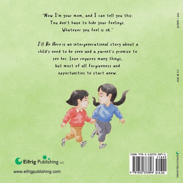 "Now I'm your mom, and I can tell you this: you don't have to hide your feelings. Whatever you feel is ok." I'll Be Here is an intergenerational story about a child's need to be seen and a parent's promise to see her. Love requires many things, but most of all forgiveness and opportunities to start anew. Author's Note: "Don't be angry." "Stop crying." "Don't be scared." Many of us never learned how to feel our feelings. When I was little, my parents didn't like me expressing my negative emotions. I wanted to talk to someone about my feelings, but I couldn't. That's why I wrote this book--to let you know that everyone feels negative emotions from time to time. They may be difficult, but they are completely natural. Even though they may be uncomfortable, it is ok to feel what you are feeling right now. The more we allow ourselves to experience feelings, the better we get at appreciating our existence. And when we accept how we feel, we will understand each other better.