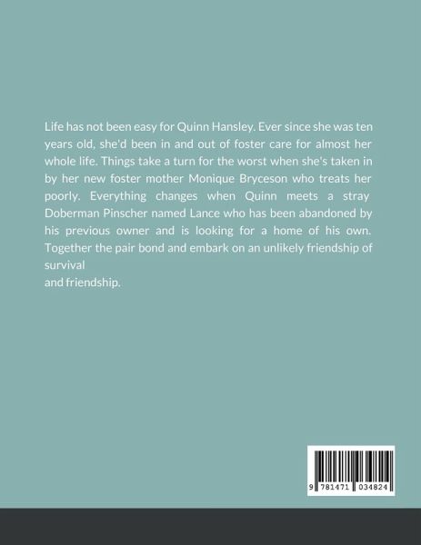 Life has not been easy for Quinn Hansley. Ever since she was ten years old, she'd been in and out of foster care for almost her whole life. Things take a turn for the worst when she's taken in by her new foster mother Monique Bryceson who treats her poorly. Everything changes when Quinn meets a stray Doberman Pinscher named Lance who has been abandoned by his previous owner and is looking for a home of his own. Together the pair bond and embark on an unlikely friendship of survival and friendship.