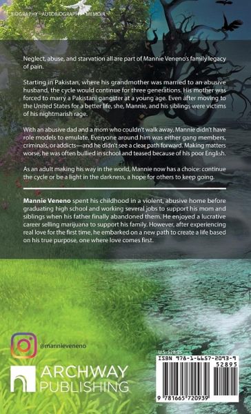 Neglect, abuse, and starvation all are part of Mannie Veneno's family legacy of pain. Starting in Pakistan, where his grandmother was married to an abusive husband, the cycle would continue for three generations. His mother was forced to marry a Pakistani gangster at a young age. Even after moving to the United States for a better life, she, Mannie, and his siblings were victims of his nightmarish rage. With an abusive dad and a mom who couldn't walk away, Mannie didn't have role models to emulate. Everyone around him was either gang members, criminals, or addicts-and he didn't see a clear path forward. Making matters worse, he was often bullied in school and teased because of his poor English. As an adult making his way in the world, Mannie now has a choice: continue the cycle or be a light in the darkness, a hope for others to keep going.