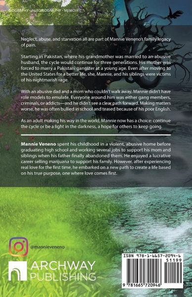 Neglect, abuse, and starvation all are part of Mannie Veneno's family legacy of pain. Starting in Pakistan, where his grandmother was married to an abusive husband, the cycle would continue for three generations. His mother was forced to marry a Pakistani gangster at a young age. Even after moving to the United States for a better life, she, Mannie, and his siblings were victims of his nightmarish rage. With an abusive dad and a mom who couldn't walk away, Mannie didn't have role models to emulate. Everyone around him was either gang members, criminals, or addicts-and he didn't see a clear path forward. Making matters worse, he was often bullied in school and teased because of his poor English. As an adult making his way in the world, Mannie now has a choice: continue the cycle or be a light in the darkness, a hope for others to keep going.