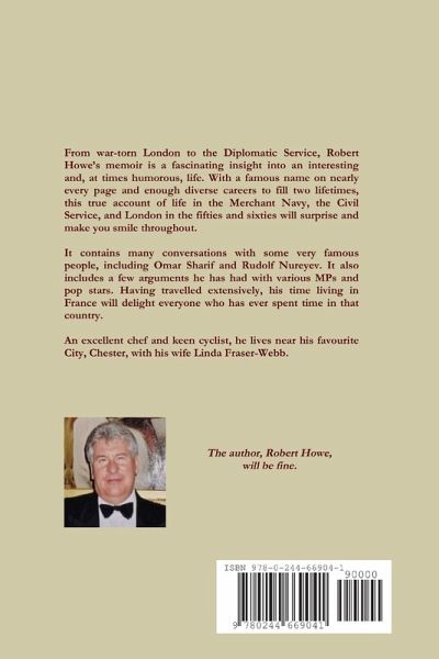From war-torn London to the Diplomatic Service, Robert Howe's memoir is a fascinating insight into an interesting and, at times humorous, life. With a famous name on nearly every page and enough diverse careers to fill two lifetimes, this true account of life in the Merchant Navy, the Civil Service, and London in the fifties and sixties will surprise and make you smile throughout. It contains many conversations with some very famous people, including Omar Sharif and Rudolf Nureyev. It also includes a few arguments he has had with various MPs and pop stars. Having travelled extensively, his time living in France will delight everyone who has ever spent time in that country. An excellent chef and keen cyclist, he lives near his favourite City, Chester, with his wife Linda Fraser-Webb.