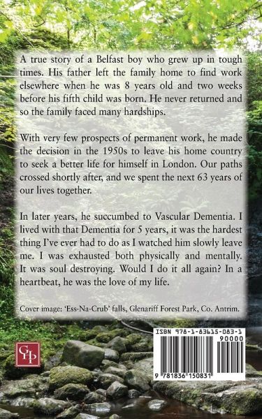My husband died in 2018 and i was encouraged to write my story and of the years caring for him with vascular dementia. They were the hardest years for us both. We had spent 63 years of our life together raising a family of 3 children. Through sheer hard work throughout his life in England he was able to give his family a life that he never had growing up in Belfast. He deserved all that he had achieved.