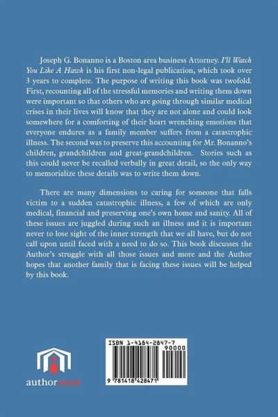 After the depression, a young girl is born into an immigrant family. At age five, she is ironing and doing laundry while both her parents are out working. As she grows, she cannot make friends or venture into the world, her place is in the home, to iron, do laundry and to cook and clean. She wants to go to college cannot because education is reserved for her baby brother. Her wedding reception is cancelled because her uncle dies of a stroke. Later in life, her baby brother dies of a stroke. Her and her family take in her parents to live with them. Her mother dies first; leaving the father that prevented her from going to college. Eventually she becomes a grandmother and after her husband dies; she only lives for her grandchildren. One Christmas Eve as she and her grandchildren anticipate the arrival of Santa Clause, she is the victim of a sudden stroke, but a very unkind stroke, one that leaves her incapable of walking or talking. Suddenly, this strong-willed grandmother is living in a wheelchair, unable to provide basic care for herself and unable to meaningfully interact with those around her. This book discusses the history of the person so that the reader knows the type of person that the unkind stroke affected. This book discusses the struggles, effects and impressions on all of those around the stroke victim and acknowledges that although the stroke affects the victim, that the victim is not the only victim. And through the darkness of it all, there is light, there is laughter, there are memories being made until finally at the end, there is enough love and presence of mind to understand the sign of the Hawk.