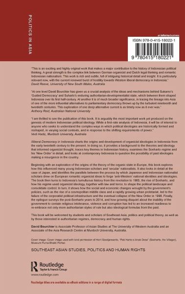 This book charts the origins and development of organicist ideologies in Indonesia from the early 20th century to the present. In doing so, it provides a background to the theories and ideology that informed organicist thought, traces key themes in Indonesian history, examines the Soeharto regime and his 'New Order' in detail, and looks at contemporary Indonesia to question the possibility of past ideologies making a resurgence in the country.