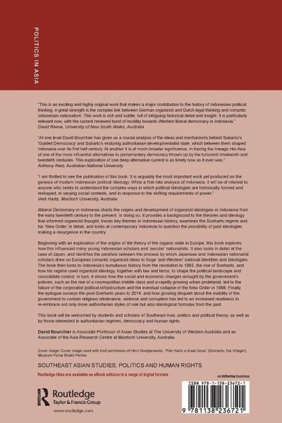 Illiberal Democracy in Indonesia charts the origins and development of organicist ideologies in Indonesia from the early 20th century to the present. In doing so, it provides a background to the theories and ideology that informed organicist thought, traces key themes in Indonesian history, examines the Soeharto regime and his 'New Order' in detail, and looks at contemporary Indonesia to question the possibility of past ideologies making a resurgence in the country. Beginning with an exploration of the origins of the theory of the organic state in Europe, this book explores how this influenced many young Indonesian scholars and 'secular' nationalists. It also looks in detail at the case of Japan, and identifies the parallels between the process by which Japanese and Indonesian nationalist scholars drew on European romantic organicist ideas to forge 'anti-Western' national identities and ideologies. The book then turns to Indonesia's tumultuous history from the revolution to 1965, the rise of Soeharto, and how his regime used organicist ideology, together with law and terror, to shape the political landscape consolidate control. In turn, it shows how the social and economic changes wrought by the government's policies, such as the rise of a cosmopolitan middle class and a rapidly growing urban proletariat led to the failure of the corporatist political infrastructure and the eventual collapse of the New Order in 1998. Finally, the epilogue surveys the post Soeharto years to 2014, and how growing disquiet about the inability of the government to contain religious intolerance, violence and corruption, has led to an increased readiness to re-embrace not only more authoritarian styles of rule but also ideological formulas from the past. This book will be welcomed by students and scholars of Southeast Asia, politics and political theory, as well as by those interested in authoritarian regimes, democracy and human rights.