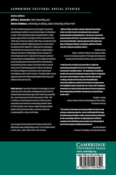 Mabel Berezin is Associate Professor of Sociology at Cornell University. She is the author of Making the Fascist Self: The Political Culture of Inter-war Italy (1997) which was awarded the J. David Greenstone Prize for Best Book of 1996-1997 in Politics and History by the American Political Science Association and named an Outstanding Academic Book of 1997 by Choice. She is also co-editor of Europe Without Borders (2003) and has written numerous articles on European politics, culture and history.