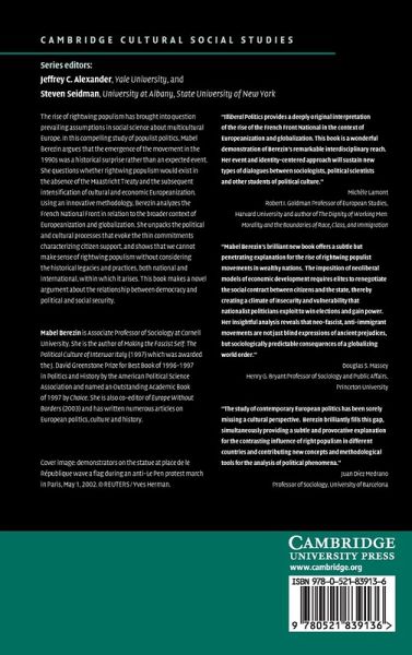 The rise of rightwing populism has brought into question prevailing assumptions in social science about multicultural Europe. In this compelling study of populist politics, Mabel Berezin argues that the emergence of the movement in the 1990s was a historical surprise rather than an expected event. She questions whether rightwing populism would exist in the absence of the Maastricht Treaty and the subsequent intensification of cultural and economic Europeanization. Using an innovative methodology, Berezin analyzes the French National Front in relation to the broader context of Europeanization and globalization. She unpacks the political and cultural processes that evoke the thin commitments characterizing citizen support, and shows that we cannot make sense of rightwing populism without considering the historical legacies and practices, both national and international, within which it arises. This book makes a novel argument about the relationship between democracy and political and social security.